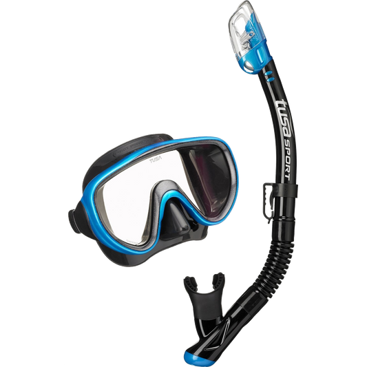 - TUSA-Tauchschnorchel – ausgestattet mit Ventilen, die das Eindringen von Wasser verhindern und das Atmen erleichtern.